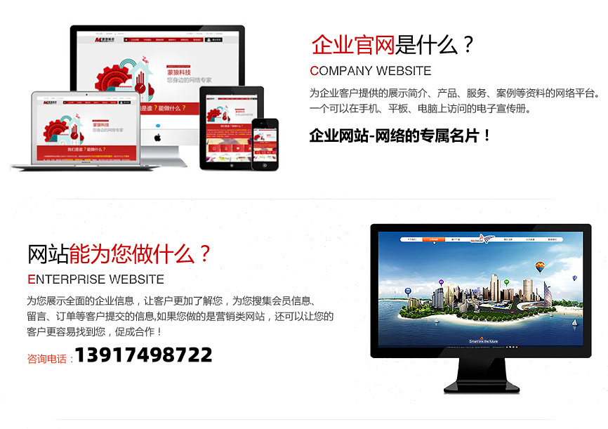 - 隨著互聯網的普及企業越來越需要制作電腦網站及手機網站,蒙狼科技作為企業官網建設商,提供網站建設,APP開發等業務。
